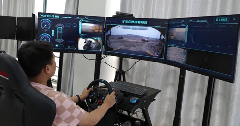 2020 年 8 月,在马钢南山矿和尚桥铁矿,调度员通过 5G+ 无人驾驶远程应急接管系统,远程控制正在作业的无人矿车行驶