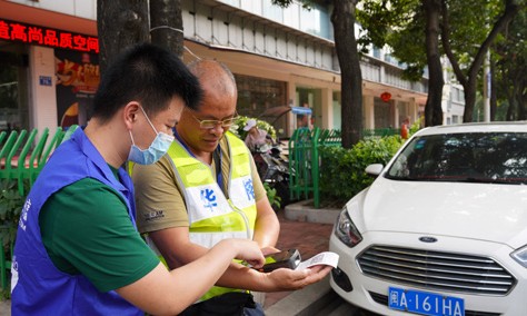 2020 年 6 月 14 日,在福建省福州市台江区群众东路,智慧停车团队成员前往路侧泊位指导一线收费员使用系统