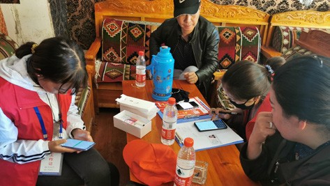 仅在西藏地区,“橙分期”覆盖门店 760 家,全年交易业务 1.6 万笔,交易金额达到 1200 万元。图为 2020 年 10 月 19 日,翼支付运营中心人员协助山南厅店业务人员在用户家里现场办理“橙分期”业务