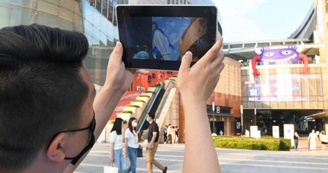 2020 年 6 月 24 日,游客在中国电信打造的国内首家 5G+MEC 智慧商业综合体——合肥万象城打卡 AR 海洋景观,全面升级数字化引流和沉浸式娱乐消费体验
