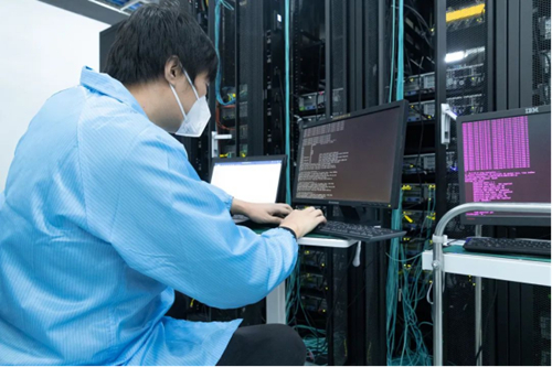 跟着刘博士的脚踏车,记者来到了实验机房。轰鸣的噪声和机架的热浪中,研发人员郑超正在紧张工作,他指向一排机柜说:“这是一个全闪存储项目,正在进行上线前的业务测试。”据介绍,依托中国电信研究院实验环境,云网融合大科学装置提供了天翼云仿真适配平台和业界首个NFV三层解耦网络云实验平台,能够开展5GC解耦测试、信创云适配、云计算新技术研究等大规模仿真验证实验。