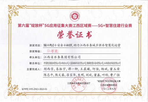 近日,第六届“绽放杯”5G应用征集大赛江西区域赛——5G+智慧住建行业赛结果揭晓。由江西省水务集团、江西电信、天翼物联、熊猫智慧水务、江西普适科技联合申报的《5G+PLC+安全+AIoT,助力江西水务城乡供水智慧化运营》项目获一等奖。