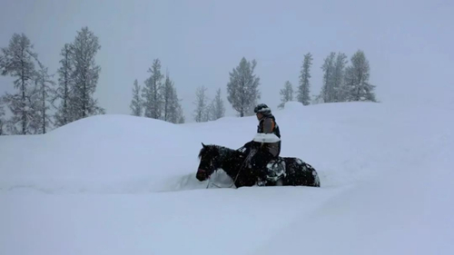 至于为什么牵马,卡里哈尔向记者介绍道:“雪太深了,如果骑马,一直走,一直拱雪,马会受不了。”禾木草原位于喀纳斯河与禾木河交汇处的山间断陷盆地中,群山环抱、森林茂密、地形复杂,气候多变,冬季气温经常低于零下30摄氏度,结冰期从10月一直到来年的4月。