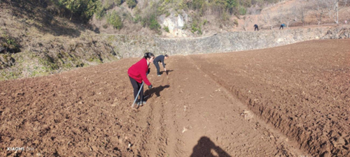 农历正月初十,年味还未散去,但商南湘河镇泉垭村黄立垭组桥洼沟药材种植基地已呈现出一派春耕备耕的繁忙景象,种植户有序分工,忙而不乱,描绘出一幅靓丽的乡村田间致富图。