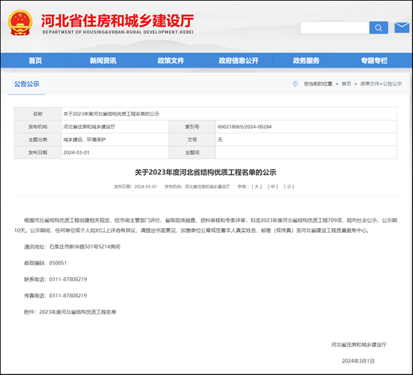 近日,河北省住房和城乡建设厅公布2023年度河北省结构优质工程名单,中国电信智慧城市产业园建设项目(一阶段)工程获评“河北省2023年度结构优质工程”。该项评选旨在强化工程参建单位的结构质量意识,提高结构质量水平,推动工程建设高质量发展。