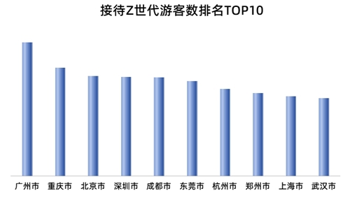 “五一”黄金周期间,Z世代选择出游最多的城市是广州市;Z世代十大心水旅游城市分别为:广州、重庆、北京、深圳、成都、东莞、杭州、郑州、上海、武汉。