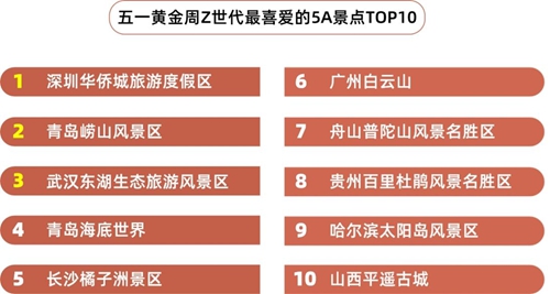 年轻人最喜爱的5A景区,涵盖了深圳、青岛、广州、长沙、哈尔滨等城市。从年轻人的打卡热门地来看,不仅包含了深圳华侨城、哈尔滨太阳岛等融合了自然风光与休闲度假于一身的景区,诸如崂山、橘子洲、普陀山、平遥古城等带有历史和文化色彩的地方也是年轻人的心水地,反映了当下年轻人对旅行中文化体验获得感的需求提升。