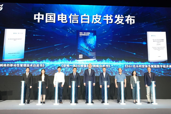 活动现场,中国电信邀请各位合作伙伴共同见证《5G+北斗时空体系赋能数字经济高质量发展白皮书》《空地一体5G增强低空网络白皮书》《面向星地异构网络的移动性管理技术白皮书》的发布,面向未来,中国电信加快6G网络架构与标准研究,积极抢占科技竞争和未来发展制高点。