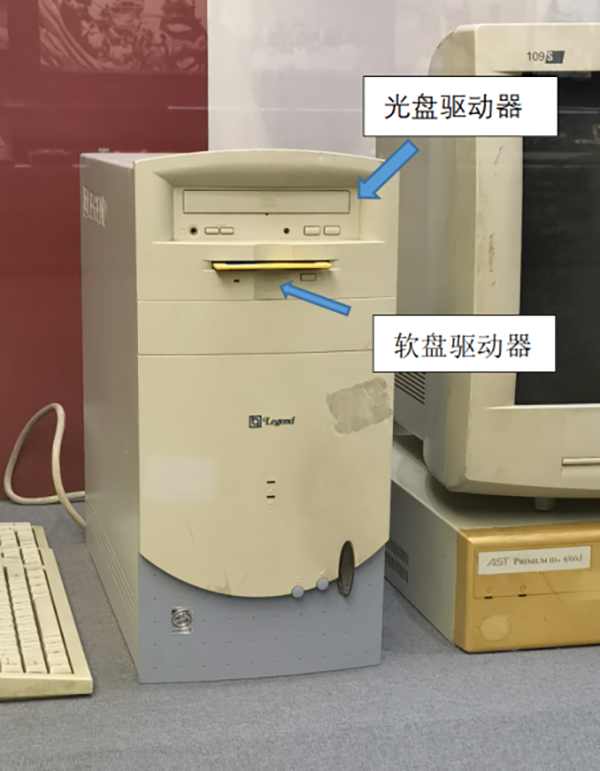 老式台式机的光盘驱动器和软盘驱动器(拍摄于中国电信博物馆展厅)