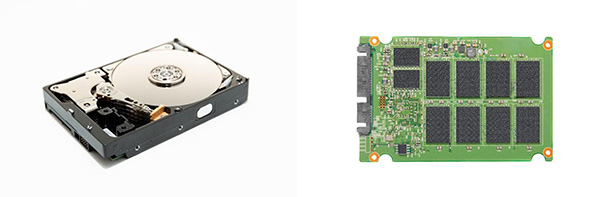 机械硬盘HDD(左)和固态硬盘SSD(右)