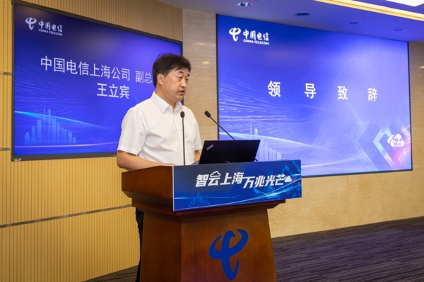 (上海电信副总经理王立宾发表致辞)